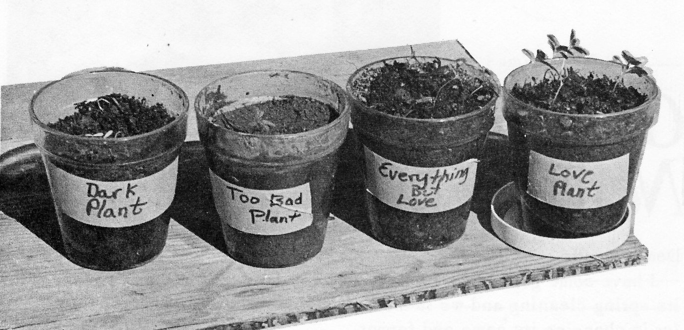 The primary school children, ages 5 through 8, have proved the power of love. In an experiment suggested to them by their teacher, Peter MacDow, the children planted five seeds in each of four pots.